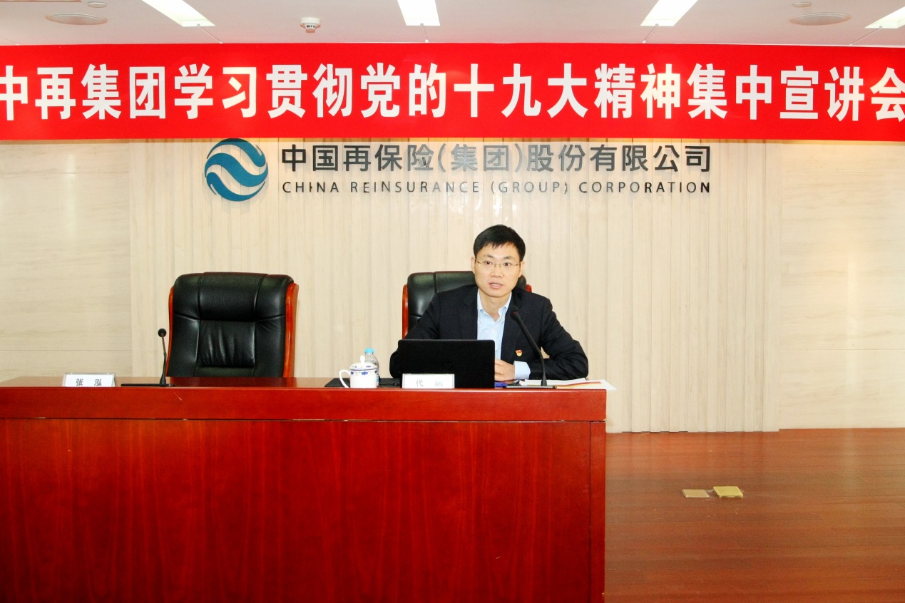 11月21日上午,中再集团党委邀请党的十九大代表、中投公司系统优秀共产党员、“感动中投”员工称号获得者代鹏同志为中再集团系统全体党员作报告,传达学习党的十九大精神。