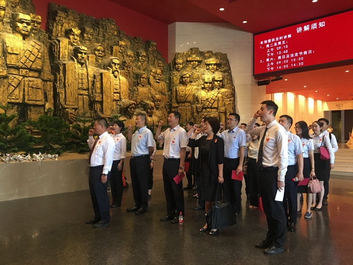 为将“不忘初心、牢记使命”主题教育活动推向纵深,把习近平新时代中国特色社会主义思想贯穿于党建和业务的各个条线。2019年7月17日,中再资产运营管理中心党支部与华夏银行总行金融市场部、托管部及北京分行等党支部联合开展“不忘初心、牢记使命”主题党日活动,中再资产管理股份有限公司党委委员、副总经理褚文胜,华夏银行北京分行党委书记、行长李大营,华夏银行总行金融市场部副总经理程邵珂参加活动。 参观开始前,全体党员在抗日纪念馆正厅集体重温了入党誓词。接下来党员同志们结合《党的初心和使命:理论与实践》的学习内容,对“中国局部抗战”、“全民族抗战”、“中流砥柱”、“日军暴行”、“东方主战场”、“得道多助”、“伟大胜利”、“铭记历史”等八部分展览内容进行了详细学习。活动通过携手参观、共同学习的形式,使党员同志们不仅深刻领会到“守初心担使命”的深刻含义,更进一步树牢“四个意识”,坚定“四个自信”。 参观展览期间,双方党员热烈交流、分享心得。在运营与银行对接的如“资金回购”、“资金托管”、“协议存款”以及“公司基本财务账户的日常管理”等多方面业务都面对面的进行了深入的沟通,充分发扬了党支部以党建促业务的优良传统。 本次活动为中再资产运营管理中心党支部和华夏银行各分支机构党支部搭建了良好的学习和交流平台,促使党建和业务两方面加强联络,提高效率。双方一致表示要在习近平新时代中国特色社会主义思想的指引下,深入开展“不忘初心、牢记使命”主题教育,引导教育党员铭记历史,缅怀先烈,珍爱和平,努力奋斗。