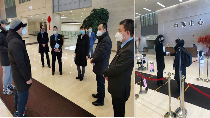 三是现场落实。2月7日,张桥总监带队来到北京项目物业现场落实防疫工作。根据项目已有租户陆续返工的实际情况,检查物业储备的消毒物资,实地察看物业消毒及入户人员体温检测等各方面工作。 四是与客户共克时艰,做好服务。了解到某重点租户有较大短期租赁车位需求后,本着对客户负责态度,与客户共克时艰的原则,团队第一时间与物业公司协调,将当前项目空置的车位提前提供给租户使用,并请物业公司增派人员,做好车位的划分及指引,保障客户合规使用车位、安全出入。